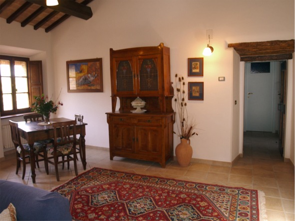 faisaient le pain. Elle est composée maintenant d'un vaste séjour à l'ameublement élégant où se détache une majestueuse cheminée en travertin ouvré; de deux chambres confortables; d'une cuisine lumineuse équipée de tout le nécessaire; et d'une coquette salle de bains avec une douche et et une buanderie. |