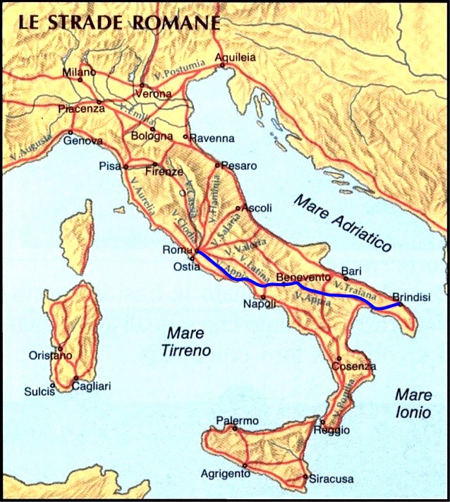 fino a Beneventum, Venosa, Tarantum e Brundisium ove c'era un importantissimo